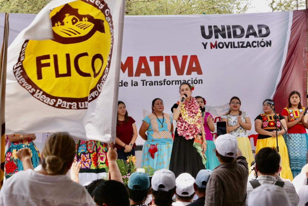 Más de 30 mil militantes y simpatizantes del Frente Unido de Comunidades Oaxaqueñas, (FUCO), marcharon con fuerza, entrega y unidad para dar la bienvenida, arropar y respaldar una vez más en el Istmo de Tehuantepec y en todo Oaxaca, a la Doctora Claudia Sheinbaum Pardo,  aspirante a coordinar el Comité de Defensa de la Cuarta Transformación de Morena y quien encabezó, una Asamblea Informativa en este municipio istmeño.
