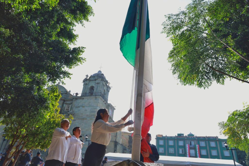 “Con gran orgullo encabezamos esta ceremonia de izamiento de nuestra Bandera Nacional, símbolo de orgullo, pertenencia y patriotismo que nos une como mexicanas y mexicanos”, sostuvo la funcionaria en esta actividad que se enmarca en el programa Mes de la Patria, Mes de la Primera Transformación.