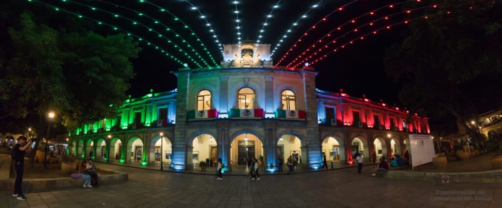 • En el marco de Septiembre, Mes de la Patria, la ciudad de Oaxaca se ilumina con 4 mil 500 focos tricolores y más de 2 mil luces en el andador turístico, el zócalo y la Alameda de León