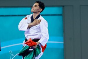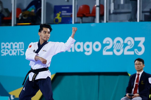 Oaxaca de Juárez, Oax. 21 de octubre de 2023.- El takwondoin William de Jesús Arroyo Reyes se consagra como uno de los mejores atletas en la historia del deporte oaxaqueño al conseguir la primera medalla de oro para México y para Oaxaca en los Juegos Panamericanos Santiago 2023 que se celebran en Chile.