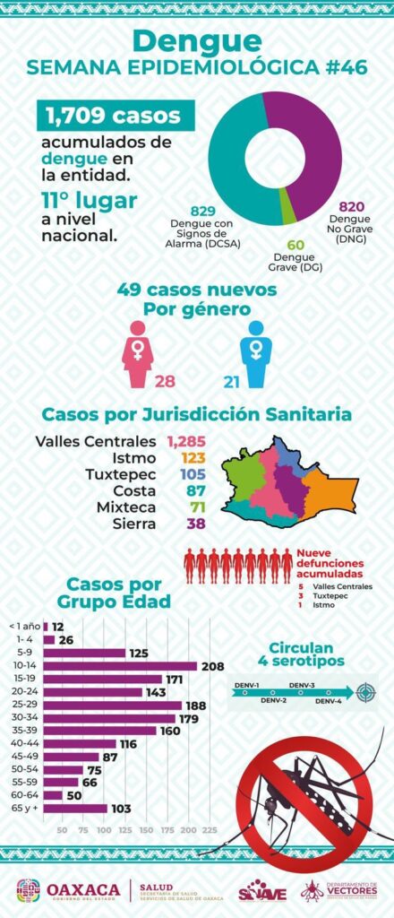 Contabiliza SSO 49 casos nuevos de dengue en Oaxaca; suman mil 709