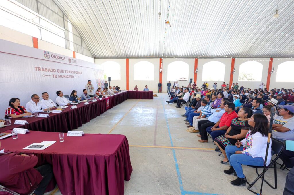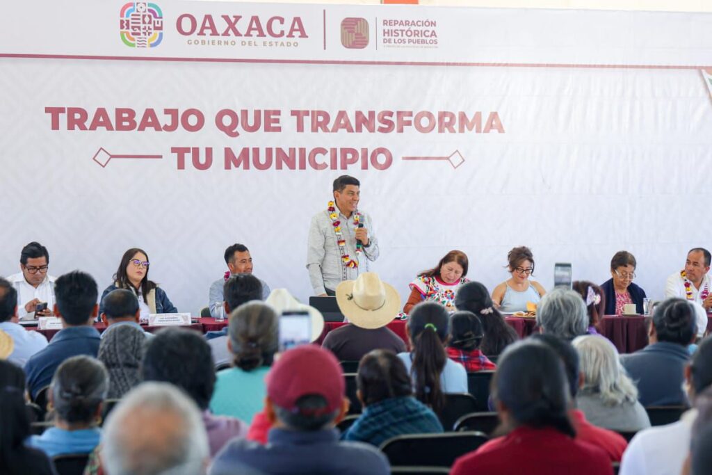 “No nos vamos a distraer, vamos a visitar todos los municipios durante esta administración para apoyar al pueblo y hacer que crezca Oaxaca”, afirmó ante el presidente municipal Rodrigo Miguel Ortiz.