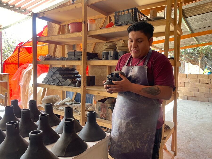 Oaxaca de Juárez, Oax. 8 de mayo de 2024.- Amando Mizraím Pedro Cardozo artista plástico originario de San Bartolo Coyotepec, resultó ganador en la convocatoria Mi Primera Exposición Individual de Técnicas Hereditarias, y ya prepara la presentación de su obra realizada en barro negro.