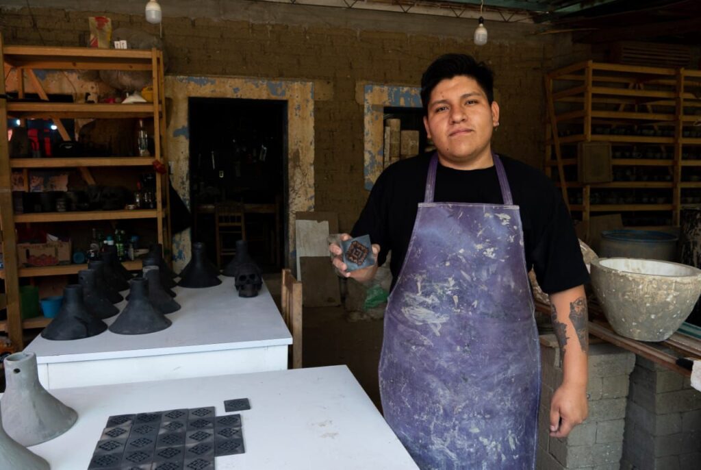 • El joven artista prepara una presentación de su trabajo en barro negro, en el CaSa