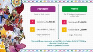 Las entradas estarán disponibles en el punto de venta físico en módulo de la Secretaría de Turismo de Oaxaca ubicado en Avenida Juárez 703, Centro, y de forma electrónica en www.superboletos.com.