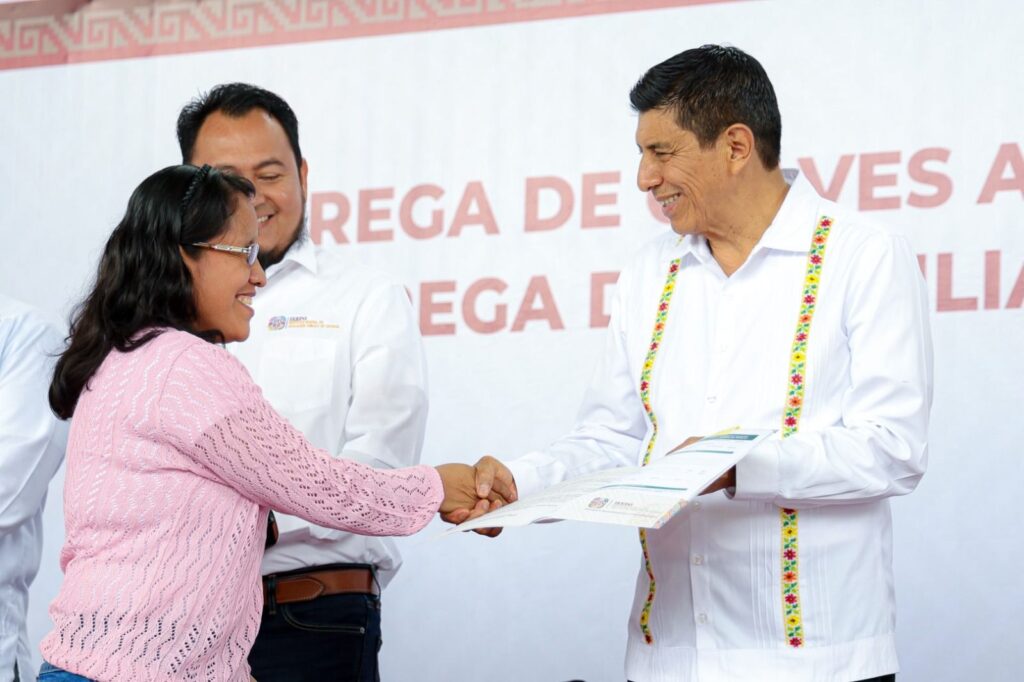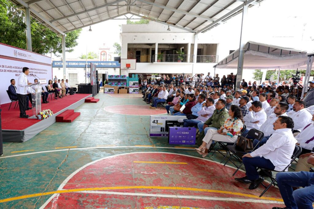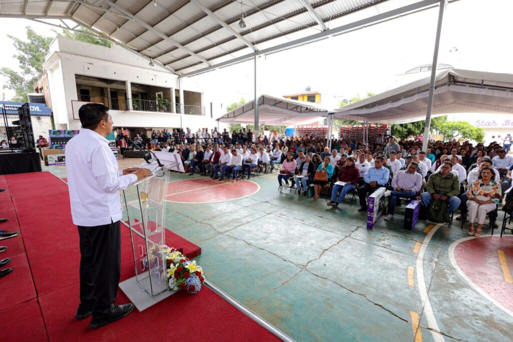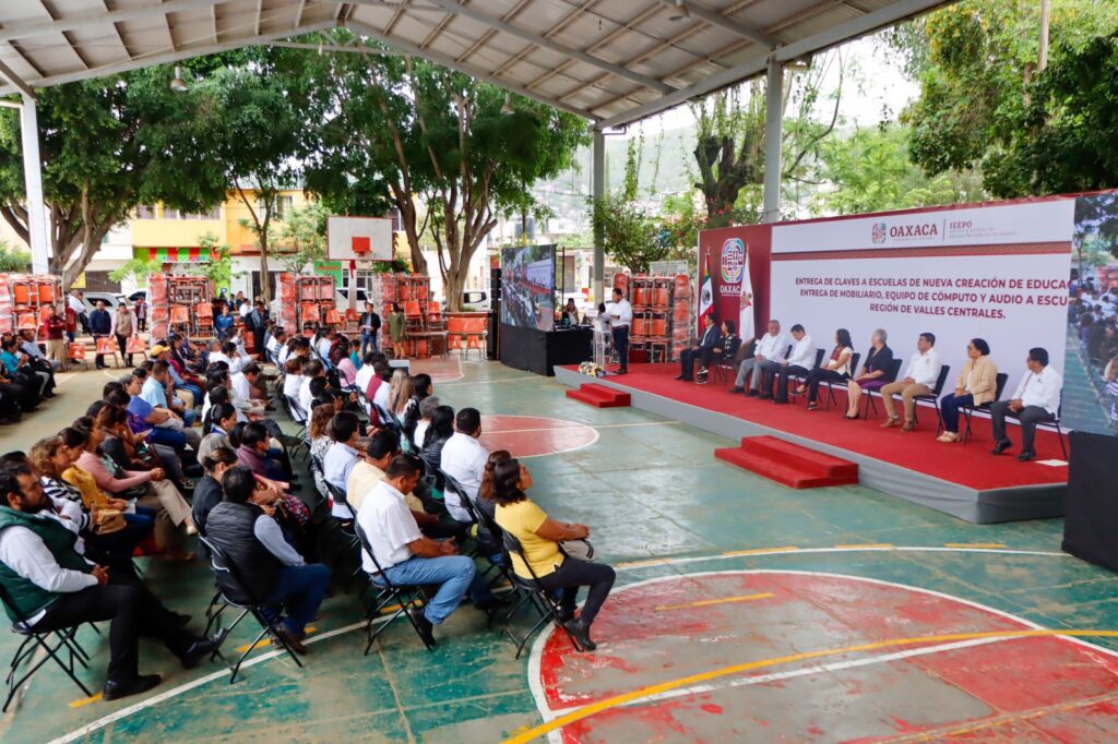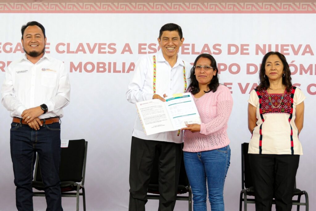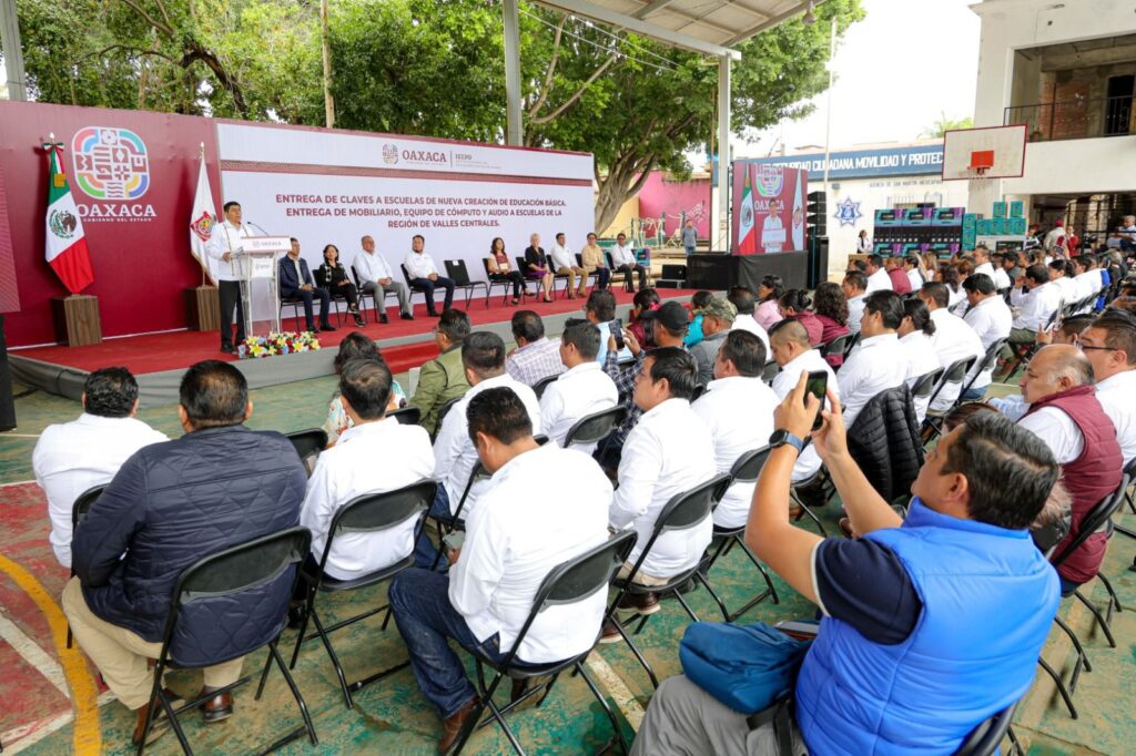 En el evento realizado en la agencia municipal San Martín Mexicapam de Cárdenas, acompañado de la Presidenta Honoraria del Sistema para el Desarrollo Integral de la Familia (DIF) Oaxaca, Irma Bolaños Quijano, el Mandatario estatal señaló que esta acción brinda certeza jurídica, seguridad y una mayor cobertura de servicios a favor de estudiantes, docentes y personal administrativo.