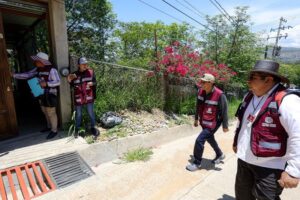 Agregó que las y los voluntarios fueron capacitados previamente por los Servicios de Salud de Oaxaca (SSO) para efectuar estas acciones de exploración al contorno de patios y jardines, y emitir recomendaciones generales de prevención en caso de tener síntomas.