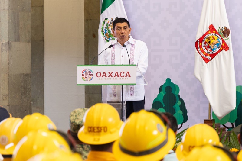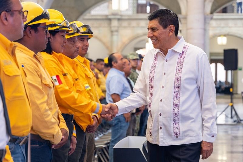 En Palacio de Gobierno, en el que asistieron representantes de las Fuerzas Armadas, autoridades municipales, funcionariado estatal, personal combatiente, comuneros y voluntarios, Jara Cruz destacó que como respaldo que brinda la Primavera Oaxaqueña a partir del mes de abril, se dotó de un seguro de vida para las y los combatientes de incendios pertenecientes a la Comisión Estatal Forestal (Coesfo)