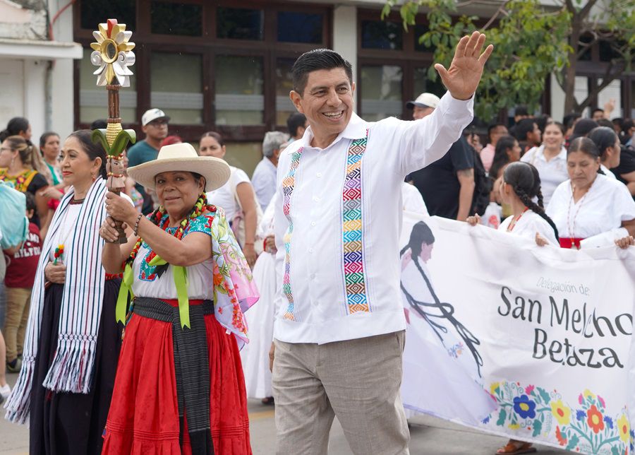 Entre vivas y aplausos, regada de frutas y repartición de mezcal, la bebida espirituosa de Oaxaca, se presentaron Villa Sola de Vega, San Vicente Coatlán y San Agustín Loxicha. También, desde la tierra que vio nacer a la mundialmente reconocida chamana María Sabina, compartieron las tradiciones de la mística región de la Sierra de Flores Magón, las delegaciones de San José Tenango y Santa María Teopoxco.