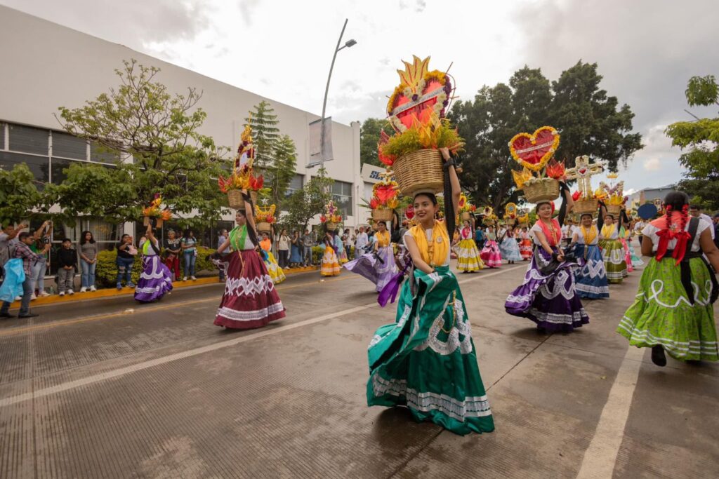 Las calles lucieron con los penachos de la Danza de la Pluma de Teotitlán del Valle que representaron a los Valles Centrales, junto con la delegación de San Bartolo Coyotepec; y los acordes de Flor de Piña anunciaron el paso de la delegación de San Juan Bautista Tuxtepec, que, junto con Santiago Jocotepec, San Pedro Ixcatlán, San Lucas Ojitlán y Acatlán de Pérez Figueroa, representaron a la Cuenca del Papaloapan.