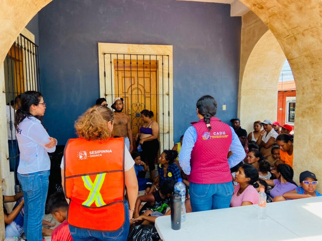 Asimismo, a fin de otorgar la asistencia humanitaria correspondiente se integró un grupo de diálogo conformado por la Coordinación para la Atención de los Derechos Humanos (CADH) del Poder Ejecutivo, la Coordinación de Delegados por la Paz (Cdpaz), el Sistema Local de Protección Integral de los Derechos de Niñas, Niños y Adolescentes (Sipinna) y la Dirección de Migración Oaxaqueña.