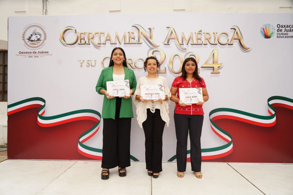 Oaxaca de Juárez, Oaxaca, a 16 de agosto de 2024.- Con la destacada participación de 16 talentosas capitalinas, el Ayuntamiento de Oaxaca de Juárez a través de la Secretaría Municipal y luego de un proceso de deliberación a cargo del jurado calificador, eligió a las 3 ganadoras del certamen “América y su Coro 2024”.
