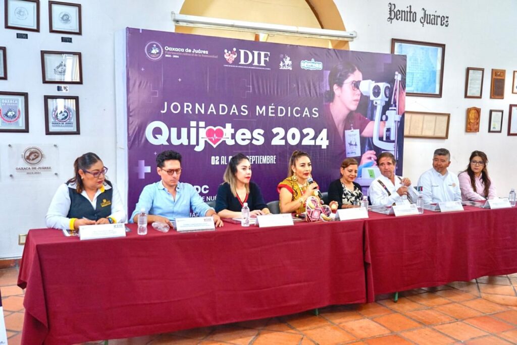 Oaxaca de Juárez, Oaxaca, a 20 de agosto de 2024.- Haciendo equipo en beneficio del cuidado a la salud de las capitalinas y capitalinos, el Sistema DIF Municipal de Oaxaca de Juárez dio a conocer las “Jornadas Médicas Quijotes 2024”, que se llevarán a cabo del 2 al 6 de septiembre en las instalaciones del CADI – CDC, ubicado en Prolongación de Nuño del Mercado #601, en la colonia Cosijoeza.