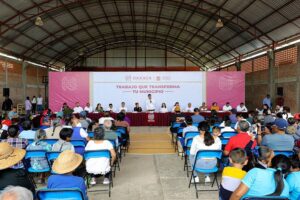 Junto a la Presidenta Honoraria del Sistema Estatal para el Desarrollo Integral de la Familia (DIF) Oaxaca Irma Bolaños Quijano, el Gobernador Salomón Jara Cruz explicó que estas acciones se realizan a través del esquema Trabajo que Transforma tu Municipio.