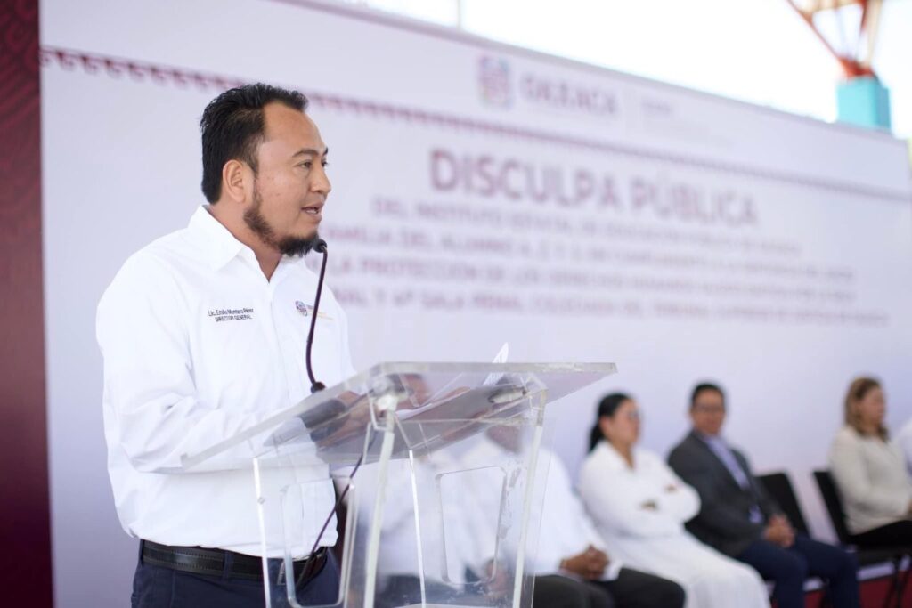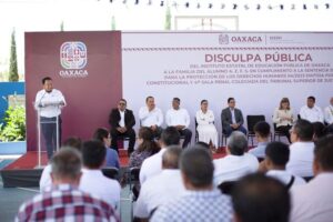 Junto a la titular de la Defensoría de los Derechos Humanos del Pueblo de Oaxaca (DDHPO), Elizabeth Lara Rodríguez y del magistrado Moisés Molina Reyes, presidente de la Sala Constitucional y Cuarta Sala Penal Colegiada del Tribunal Superior de Justicia del Estado, indicó que ofrecer disculpas no humilla, por el contrario, enaltece a quien lo hace, pues refleja un sentido humanista.
