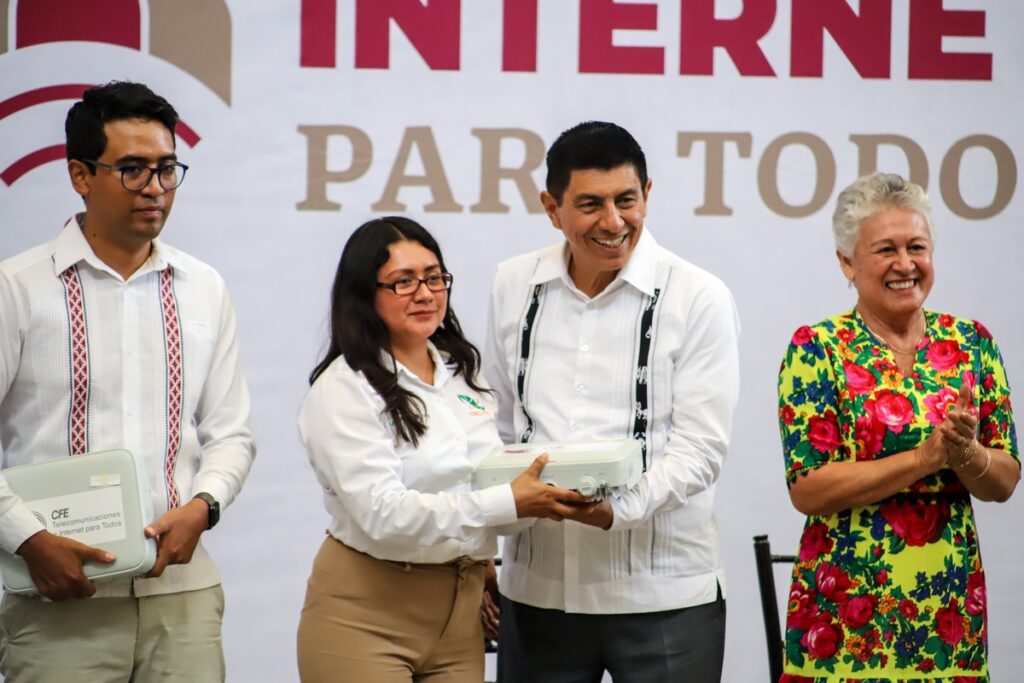Oaxaca de Juárez, Oax. 27 de agosto de 2024.- Con una inversión de 18.8 millones de pesos, el Gobernador Salomón Jara Cruz anunció el inicio del Programa Internet Todos, el cual beneficiará a más 102 mil personas habitantes de las ocho regiones con mayor conectividad, para fomentar el desarrollo tecnológico y el acceso a la información.