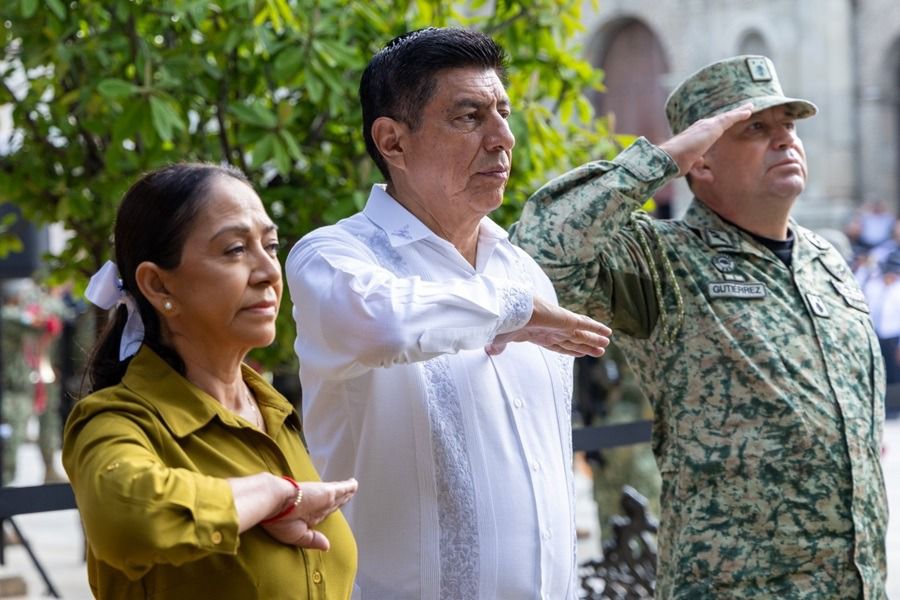 Oaxaca de Juárez, Oax. 2 de septiembre de 2024.- Al encabezar el izamiento de la Bandera Nacional que conmemora el CCXIV Aniversario de la Independencia de México, la Presidenta Honoraria del Sistema Estatal para el Desarrollo Integral de la Familia (DIF) Oaxaca Irma Bolaños Quijano junto al Gobernador Salomón Jara Cruz, expresó que en septiembre se rememora la lucha por la libertad del pueblo mexicano.