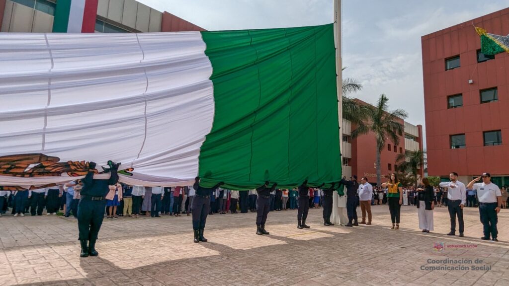 En este acto cívico, el titular de la dependencia, Noel Hernández Rito, destacó la relevancia de los valores de libertad, justicia y unidad que han forjado a la nación, subrayando el orgullo de ver ondear el estandarte mexicano como símbolo de la soberanía nacional.