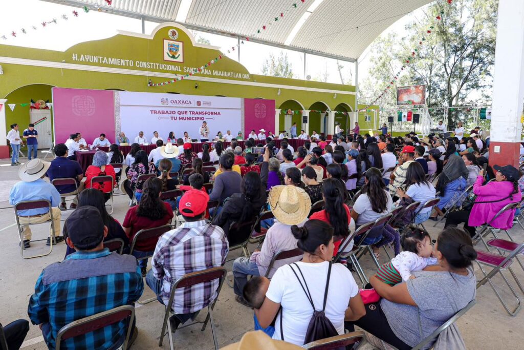 Santa Ana Miahuatlán. Oax.14 de septiembre de 2024.- A través de la estrategia Trabajo que Transforma tu Municipio el Gobernador Salomón Jara Cruz, anunció en esta comunidad una inversión de 5 millones de pesos para atender las necesidades de la población y mejorar sus condiciones de vida.