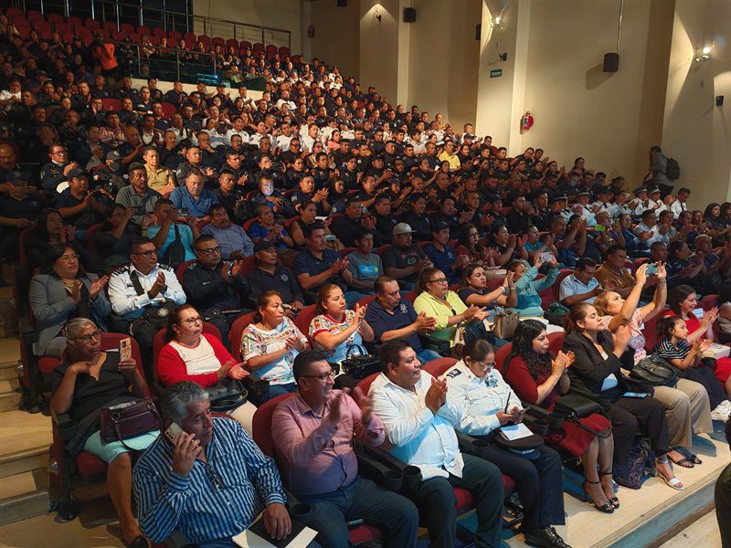 Al encabezar este encuentro, la titular del SESESP Karina Barón Ortiz señaló que esta acción se basa en la política de paz y seguridad que impulsan los gobiernos de México y Oaxaca para prevenir la violencia, intervenir adecuadamente en la mediación de los conflictos ciudadanos y responder a la legítima demanda del pueblo, de contar con fuerzas de seguridad confiables y humanas.