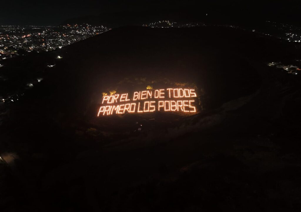 Con letrero luminoso «Por el bien de todos primero los pobres», rinde homenaje Gobierno de Oaxaca a AMLO
