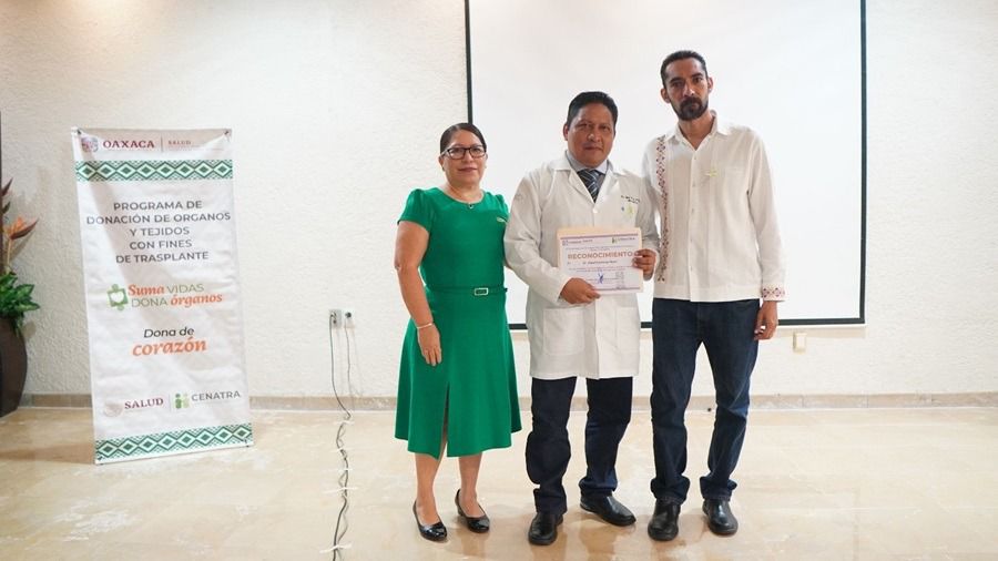 Durante su mensaje, precisó que este reconocimiento representa el logro de un trabajo en equipo; por lo que agradeció el esfuerzo de quienes están involucrados en el proceso de donación y trasplante de órganos y tejidos en el territorio oaxaqueño.