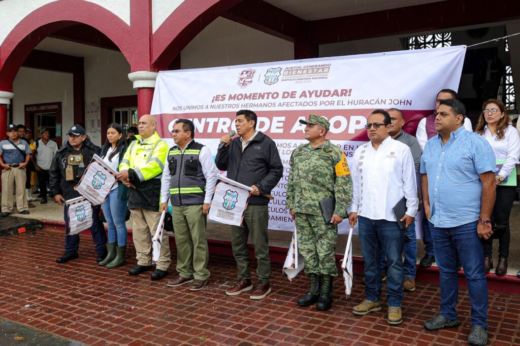 Desde el palacio municipal de Santiago Pinotepa Nacional junto a autoridades municipales se dio paso a varias unidades que trasladan alimentos no perecederos, enseres, agua y artículos de primera necesidad para hacer frente a los estragos de John.