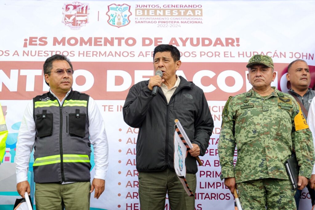 El Gobernador Salomón Jara Cruz dio el banderazo de arranque de la distribución de víveres para las familias que resultaron afectadas por el meteoro que desde hace 4 días azota la región.