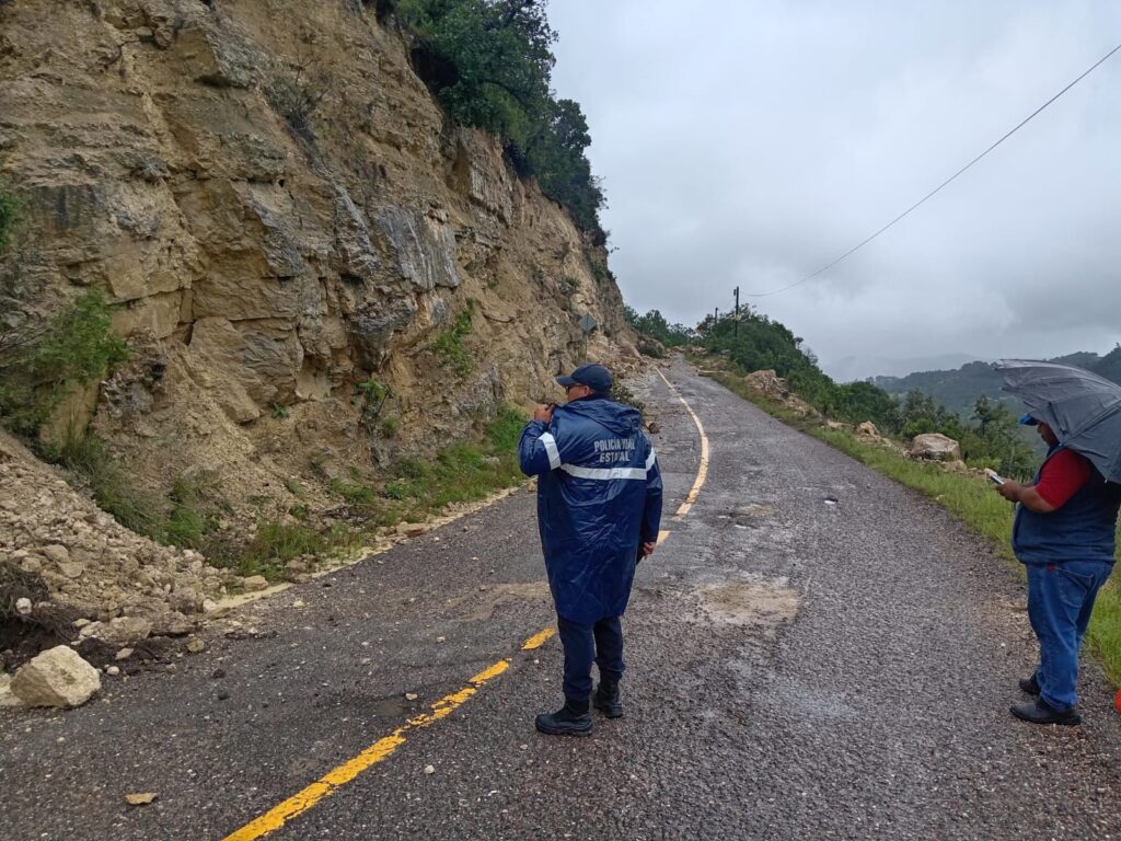 - Policía Vial Estatal, Cabien y autoridades locales atienden los deslaves que impiden el paso para que sea liberado