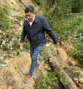 Pasado medio día, el Gobernador Salomón Jara Cruz, sorteando derrumbes, algunos tramos a pie, debido al mal estado de los caminos, llegó al lugar para supervisar los daños. Lo recibió Diego Audelo Cordero, el coordinador de la universidad.
