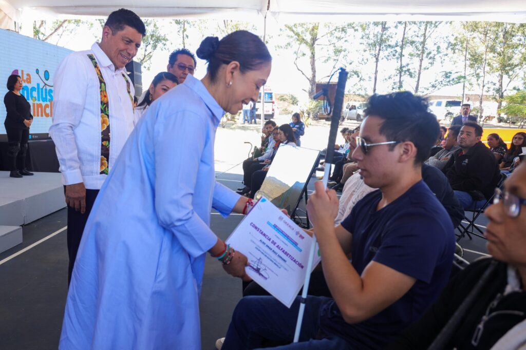 Se entregaron constancias por la conclusión del curso de lectura y escritura del sistema Braille a personas con discapacidad visual, así como actas de nacimiento de manera gratuita e impresa en sistema Braille, aunado a la entrega de reconocimientos como parte de la estrategia Abriendo Espacios a los grupos Modelos y comercial Chedraui.