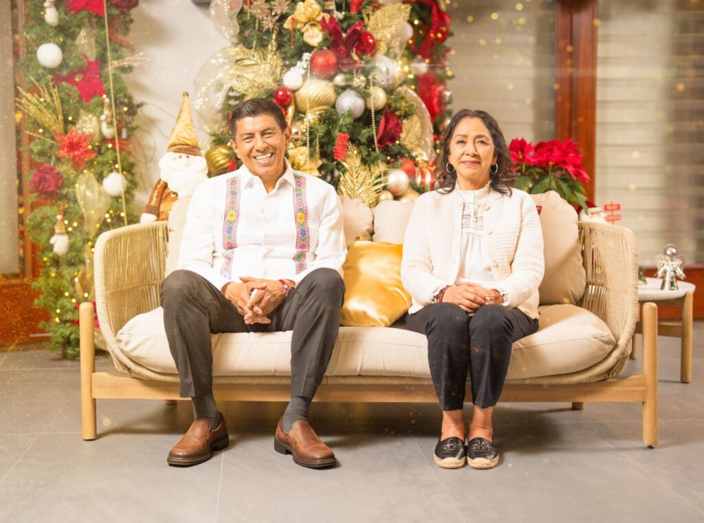 Oaxaca de Juárez, Oax. 24 de diciembre del 2024.- El Gobernador del Estado, Salomón Jara Cruz, en compañía de la Presidenta Honoraria del Sistema Para el Desarrollo Integral de la Familia (DIF) Oaxaca, Irma Bolaños Quijano; emitieron un mensaje de cariño y esperanza a las y los oaxaqueños a través de un video, en el que desearon una Feliz Navidad y un próspero Año Nuevo 2025.