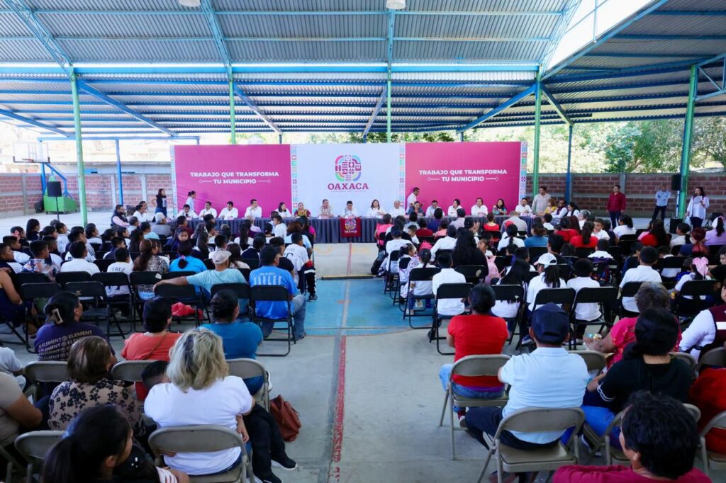 El Instituto Estatal de Educación Pública de Oaxaca (IEEPO), con una inversión de 270 mil pesos, beneficiará con sillas, escritorios, pizarrón, bafle, equipo de sonido, computadoras, así como material de aseo, deportivo, de oficina y didáctico, además, una banda de guerra para los diversos planteles educativos de ese municipio.