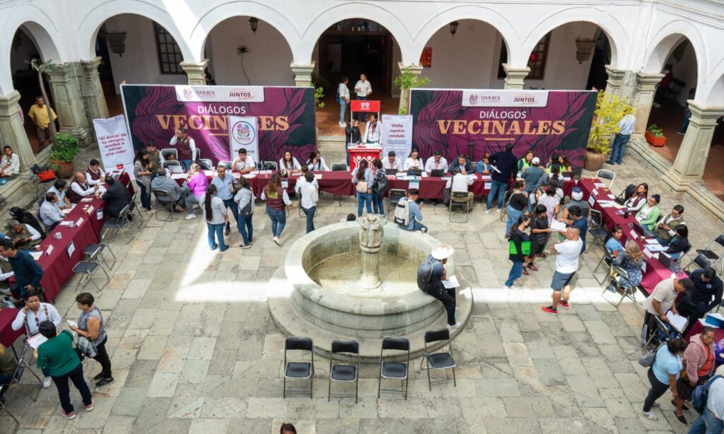 Oaxaca de Juárez, Oax., 19 de febrero de 2025.– Bajo la premisa de ser un gobierno de puertas abiertas, inició la cuarta jornada de Diálogos Vecinales, un espacio dedicado a escuchar a las vecinas y vecinos que, desde muy temprano, arribaron al Palacio Municipal con documentos en mano para realizar trámites o presentar peticiones al funcionariado presente.