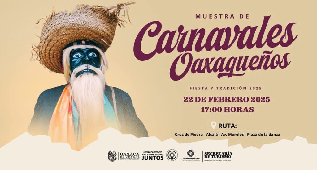 Oaxaca de Juárez, 19 de febrero de 2025.- La música, alegría y bailes que forman parte de la riqueza cultural de la entidad, se podrán apreciar en la Muestra de Carnavales Oaxaqueños, Fiesta y Tradición 2025 que se realizará este sábado 22 de febrero a las 17:00 horas.