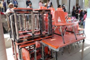 En este marco, el Instituto Estatal de Educación Pública de Oaxaca (IEEPO) entregó mobiliario, equipos de sonido, material de aseo, deportivo y de oficina a ocho escuelas de nivel básico, con un monto total de 300 mil 802 pesos.
