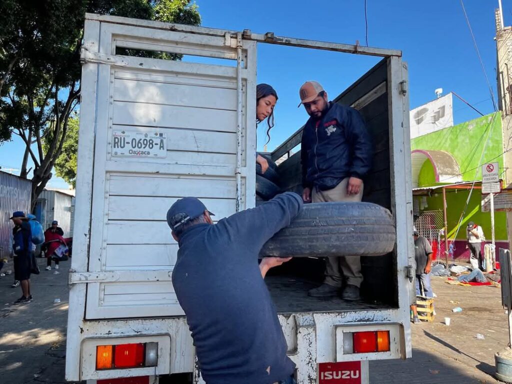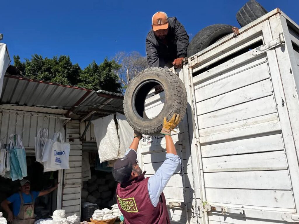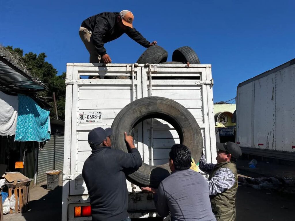 De manera previa, en coordinación con la Secretaría de Servicios Vecinales de Oaxaca de Juárez, se fortalece el “Llantatón” mediante el retiro de llantas en desuso de diversos puntos de la Central de Abasto.
