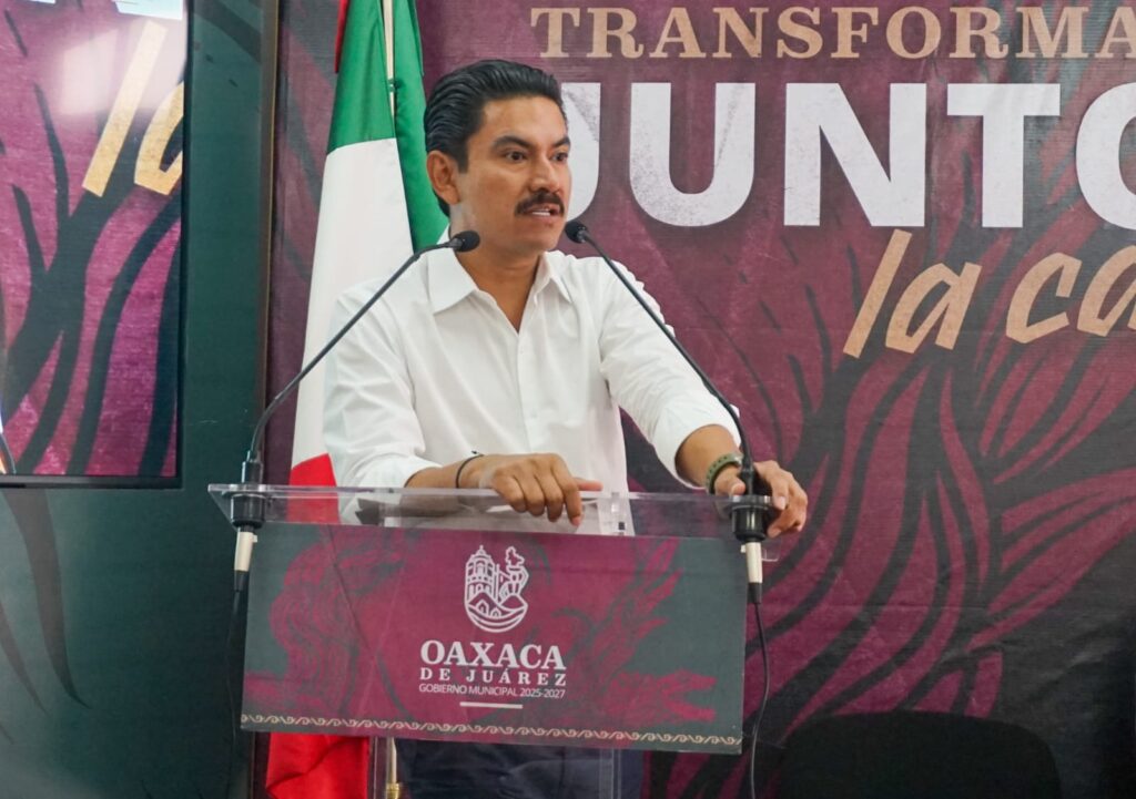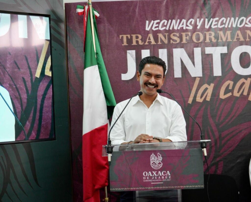 Oaxaca de Juárez, Oax. 25 de marzo de 2025.- En conferencia de prensa, el Presidente Municipal de Oaxaca de Juárez, Ray Chagoya, presentó un informe sobre los avances en diversos temas que impactan en el bienestar de vecinas y vecinos, destacando los esfuerzos en seguridad e infraestructura hídrica.