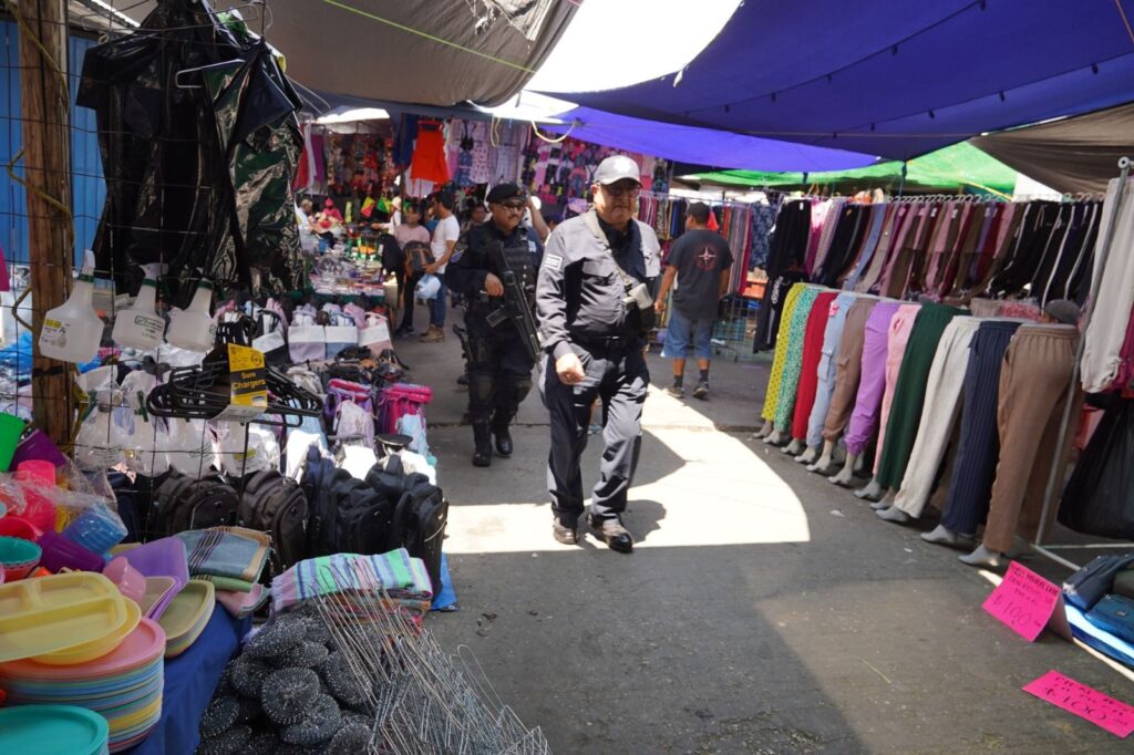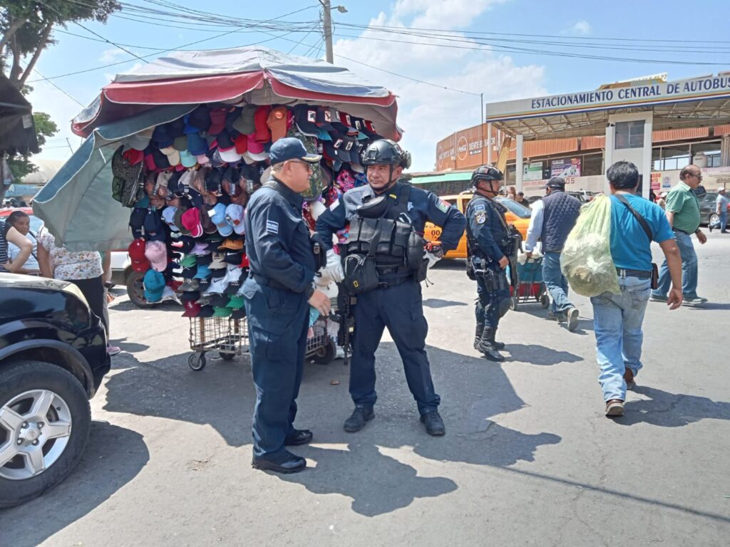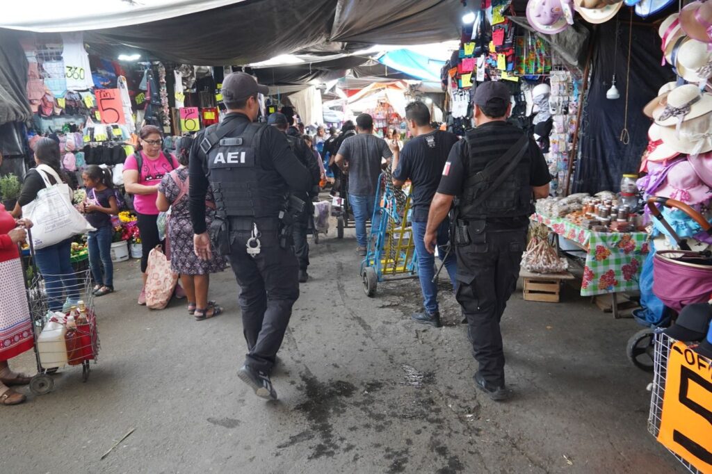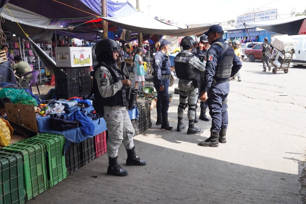 El convoy policial recorrió el perímetro del Mercado de Abasto, mientras que elementos de la Guardia Nacional, Sedena, Agencia Estatal de Investigaciones (AEI), Policía Estatal y elementos de la Dirección de Proximidad Social recorrieron pie tierra todas las áreas del mercado.