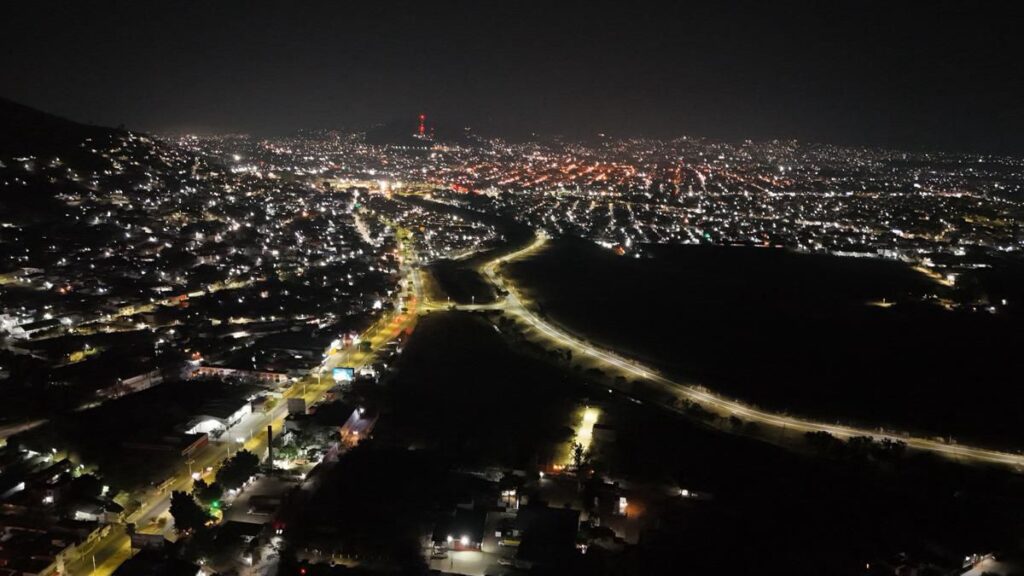 Oaxaca de Juárez, Oax., 7 de abril de 2025.- La calle Francisco Zarco es una importante vía del municipio de Santa Cruz Xoxocotlán y con luminarias nuevas luce totalmente diferente a lo que antes era. Ubicada en los límites con Oaxaca de Juárez, muy cerca de la colonia Miguel Alemán Valdés, este importante camino conecta al periférico con Símbolos Patrios y avenida Universidad dando paso a miles de vehículos que a diario transitan la zona.