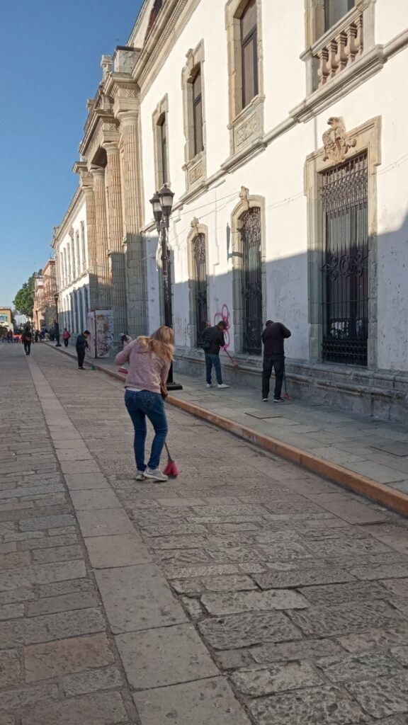 “Entre todos lo estamos logrando. Seguimos transformando la capital. El trabajo de comerciantes, vecinos, colonos de otras partes de la ciudad, así como la importante presencia del funcionariado municipal nos indica que estamos creando la cultura de mantenimiento a nuestro Centro Histórico, el sentido de la recuperación de lo que es de todos. El hecho de meter la mano todas para todos y todos para todas, es porque esto hace que cuidemos más nuestra ciudad, hace que generemos arraigo, identidad y, por supuesto, que nos identifiquemos plenamente con el trabajo comunitario”.