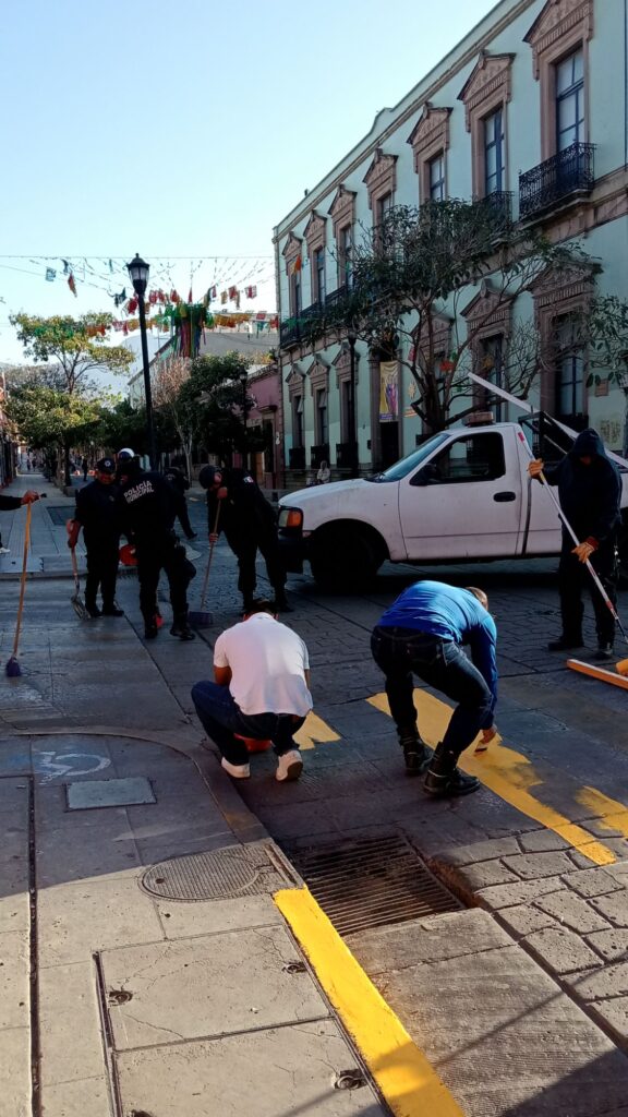 07:00 horas: El Centro Histórico con sus frías y semi vacías calles de cantera empiezan a recibir los primeros rayos solares dominicales cayendo desde lo más alto, un limpio cielo azul con blancas nubes. Frente al Templo de la Preciosa Sangre de Cristo, el presidente municipal, Ray Chagoya, hace una breve pausa a la tarea de pintura de señalización vial para afirmar: “cada vez, con más ritmo, estamos recuperando orden y la preservación de nuestro Patrimonio Cultural de la Humanidad”.
