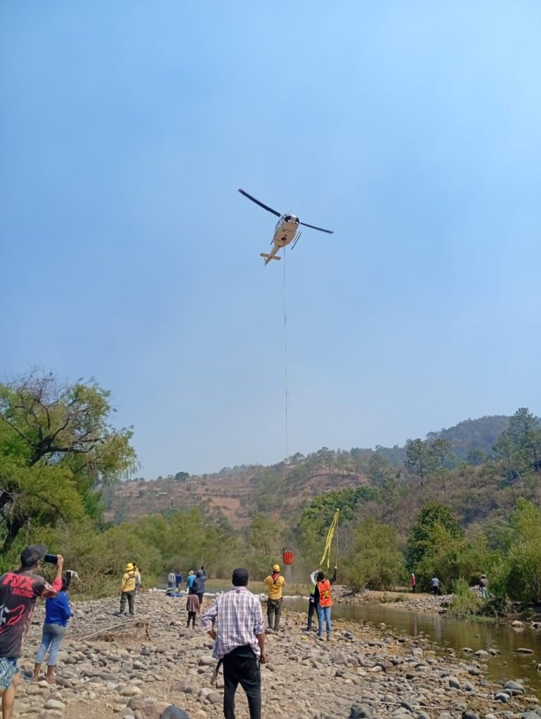 • A las labores de combate se sumó la aeronave de la administración estatal BELL UH-1H