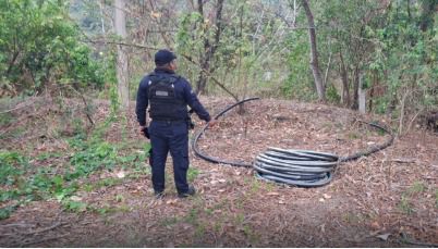 En el sitio, personal de Seguridad Física de Petróleos Mexicanos (Pemex) localizó dos válvulas, aparentemente instaladas para la extracción ilícita de combustible, así como un tramo de manguera con una longitud aproximada de entre 200 y 300 metros.