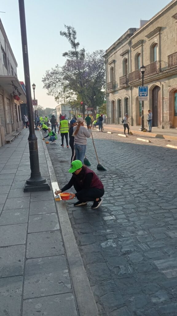 Durante el tequio, cuadrillas municipales, con el respaldo de vecinas, vecinos y comerciantes de la zona, intervinieron los tramos prioritarios con acciones que permiten una mejor movilidad peatonal y una imagen urbana más armoniosa. Se realizó el barrido manual de banquetas y arroyo vehicular, retiro de residuos, lavado de superficies y aplicación de pintura en pasos peatonales, contribuyendo así a la seguridad vial.
