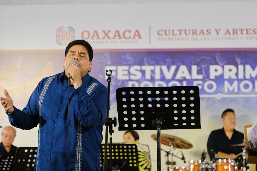 “Hojas muertas” fue la siguiente melodía que dio pie a “Mi corazón oaxaqueño”, una composición del director que se estrenó en este escenario del Festival Primavera Rodolfo Morales, y que tuvo la interpretación de Lupita Alavés con un sonido destacable de metales.