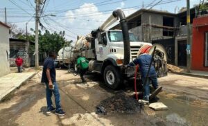 Por otra parte, en coordinación con la Comisión Estatal del Agua para el Bienestar (CEABIEN), se realizaron trabajos de desazolve preventivo en la red de drenaje de las colonias Jacarandas y Ejidal, en la agencia de San Martín Mexicapam. Estas labores permiten reducir riesgos de encharcamientos y afectaciones durante la temporada de lluvias.