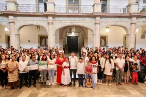 “Nos sumamos a la batalla cultural contra el atraso y la marginación, para así elevar el nivel cultural de los pueblos de Oaxaca y convertir al estado en un referente nacional en la formación de personas lectoras y escritoras que expresan su vida social, cultural y creativa de forma vibrante y relevante”, expresó.