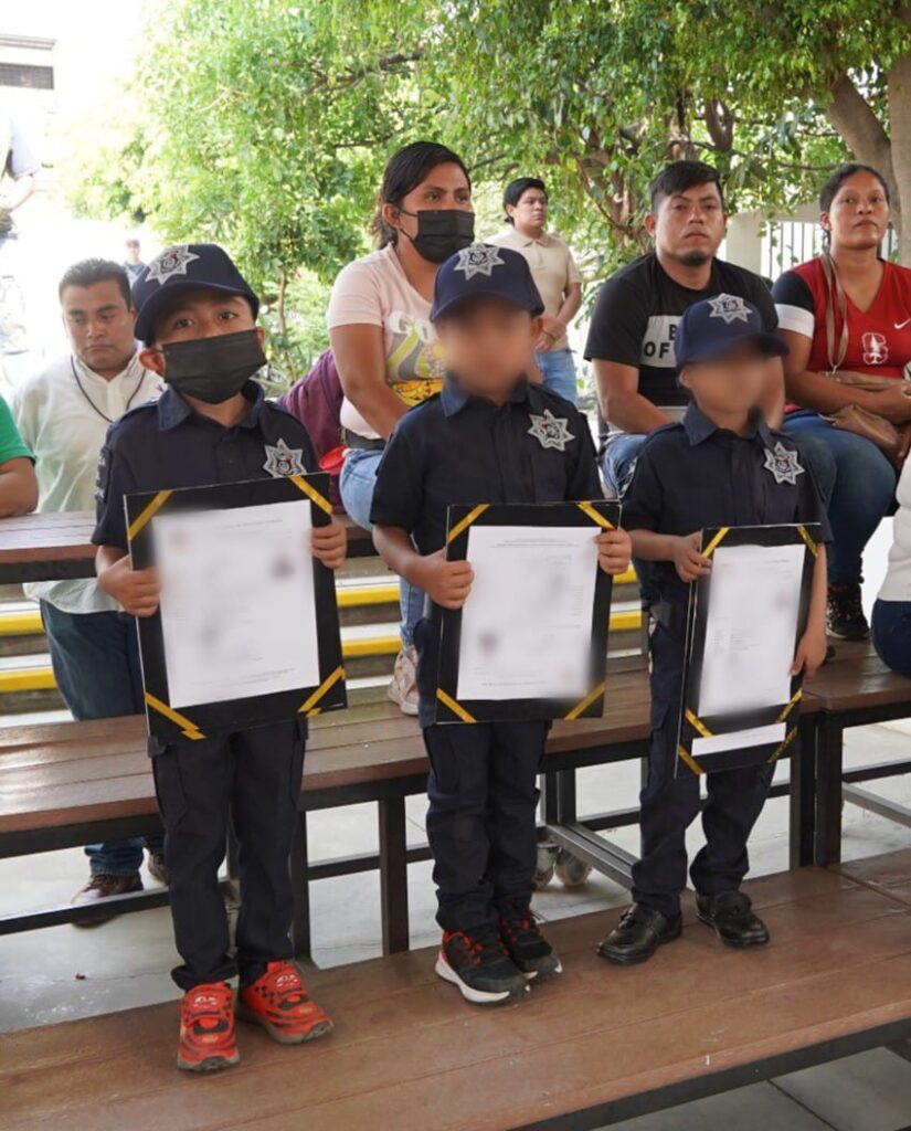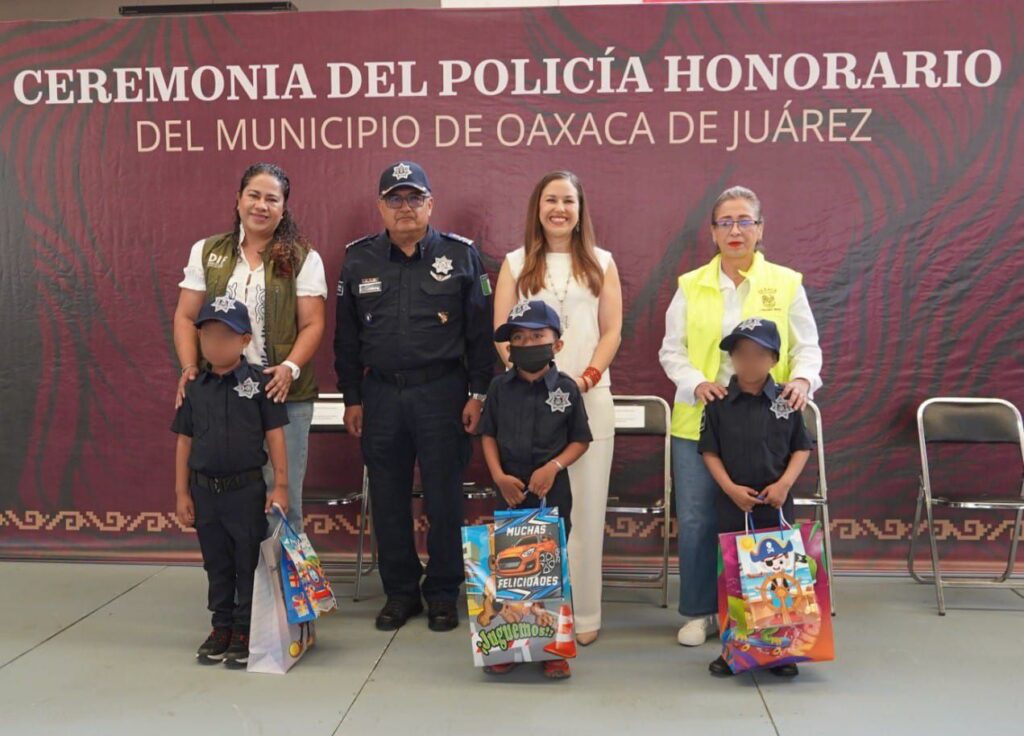 Oaxaca de Juárez, Oax., 30 de abril de 2025.- En el marco del Día de la Niña y el Niño, la Secretaría de Seguridad Vecinal entregó el nombramiento de Policía Honorario a tres niños.