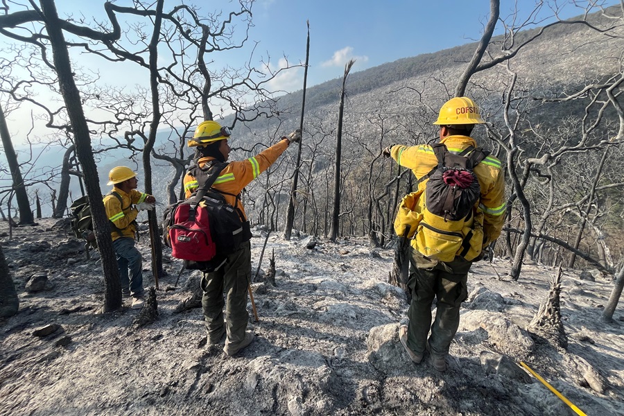 Para su combate se instaló un Equipo de Manejo de Incidentes (EMI) integrado por personal técnico de las comisiones Nacional Forestal (Conafor), Nacional de Áreas Naturales Protegidas (Conanp) y Coesfo; en conjunto con autoridades de ambos municipios, con la finalidad de mantener las labores coordinadas.